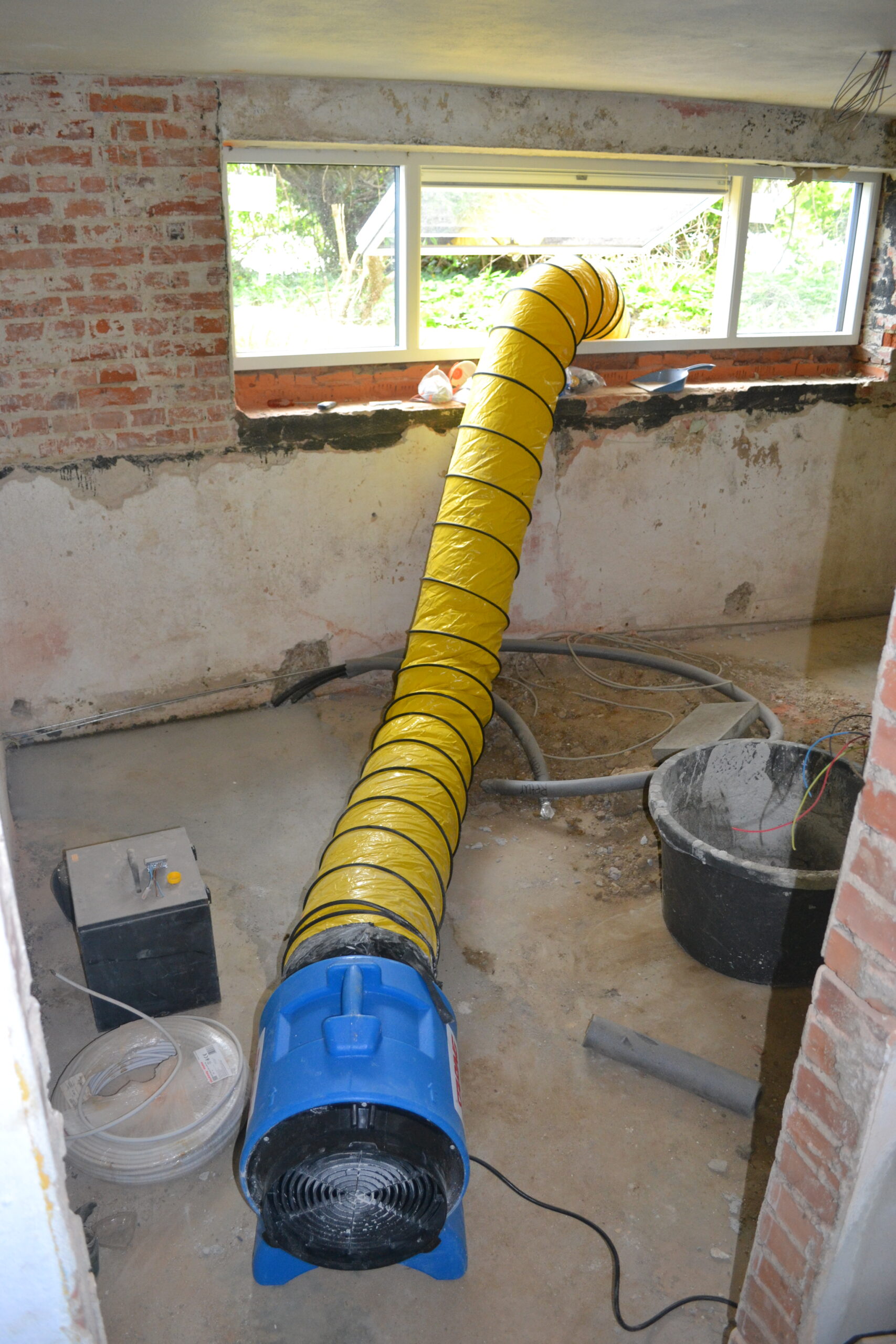 VAF-ventilatoren kan du bruge til udsugning af støv ved nedbrydning og til flytning af luft ved udtørring sammen med affugter. Skal du renovere på loftet, kan ventilatoren også suge støv derfra.